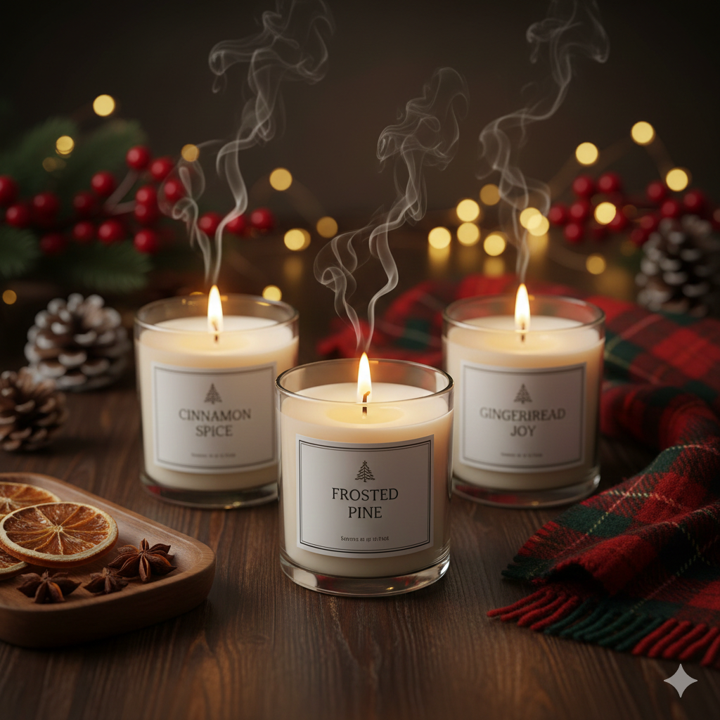 Crea un ambiente acogedor y festivo en tu hogar con este set de tres velas aromáticas. Cada vela está elaborada con cera de soja natural y aceites esenciales, ofreciendo fragancias que evocan la esencia de la Navidad. Presentadas en elegantes recipientes de vidrio, son el regalo perfecto para relajarse durante las fiestas.